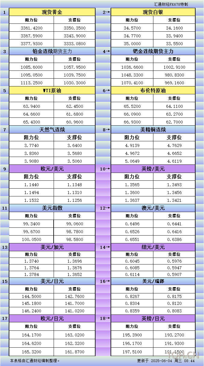 - 一张图看商品支撑阻力:金银油气+铂钯铜农产品期货(2025年6月4日) 06-04 12:40